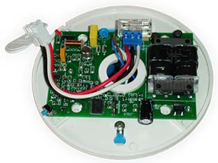 - After removing FireAll™ from the box remove the 4 screws on top that secure the housing to the mounting base and circuit board. When separating the housing from mounting base pay attention to the power led on the side of the housing and realign it using the notch in the housing when reinstalling.