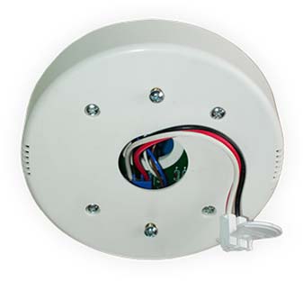 - There are 3 leads from the circuit board Red, White and Black put them through the back of the mounting base and attach them to the house wiring.