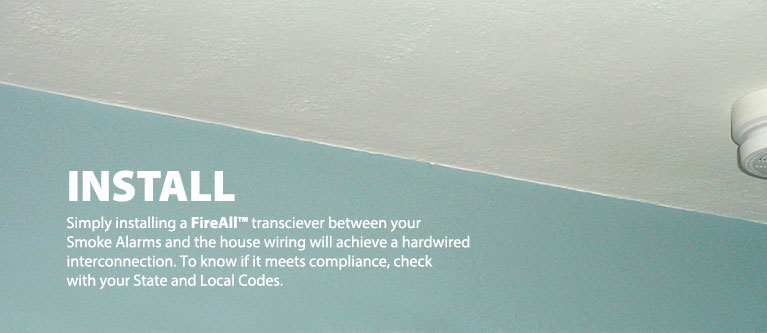 To test that the FireAll™ is interconnected with other units in the home simply push the test button on the smoke alarm. Hold it for the 3rd cycle of beeps, the FireAll™ will receive the signal from the smoke alarm and transmit a 455khz signal on the house wires other FireAlls in the house will receive the signal and sound the alarms attached to it.